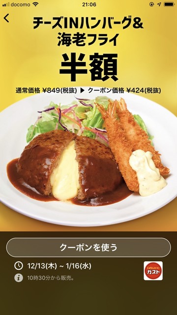 ガスト チーズinハンバーグ すかいらーくアプリで299円 ミックスグリル499円 バイク好きペケの気ままにブログ