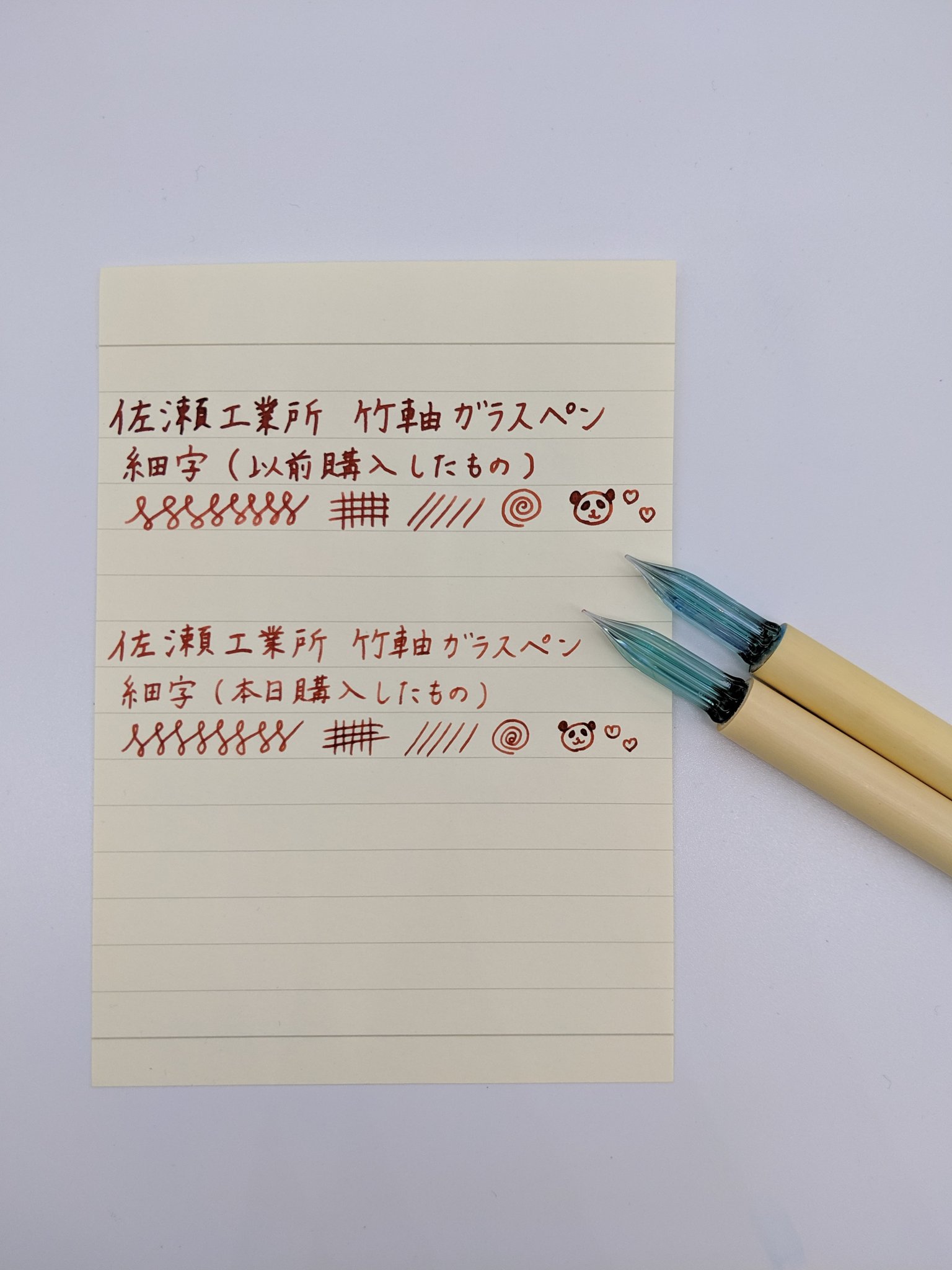 香 おうちペン字 on twitter 普段から愛用している 佐瀬工業所の竹軸ガラスペン もう一回り細いのが欲しいなと思い 買いに行ってきました 細字の中でも一番細いものを探していただきました 比べると微妙に細くて 書き味も異なる それから シャンシャンにも