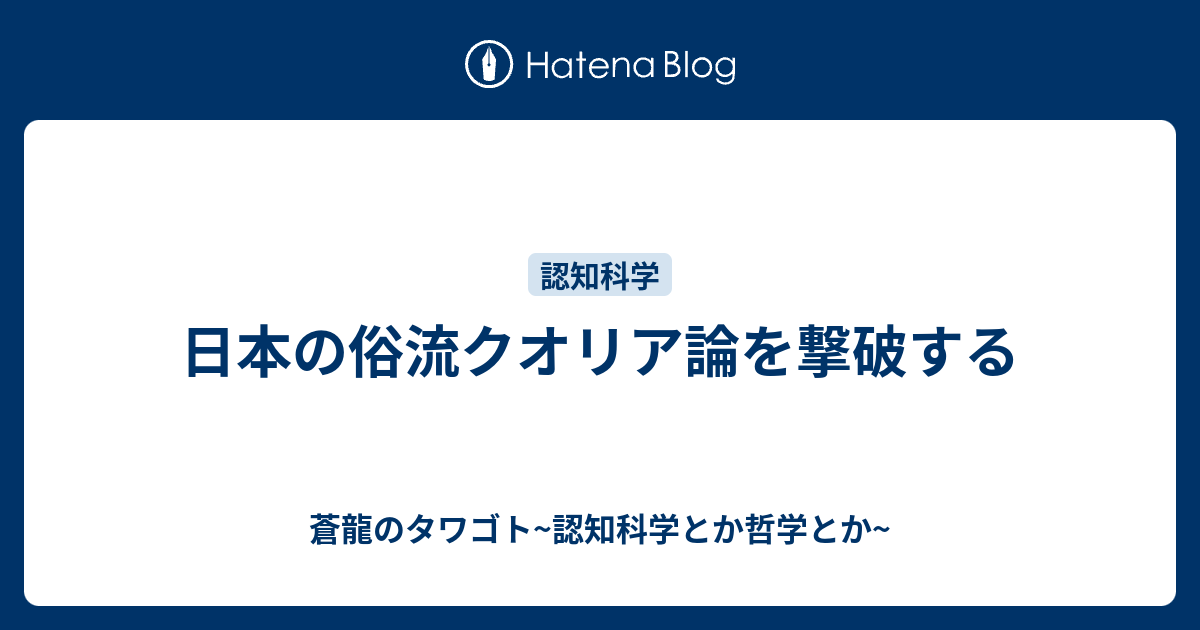 日本の俗流クオリア論を撃破する 蒼龍のタワゴト 認知科学とか哲学とか
