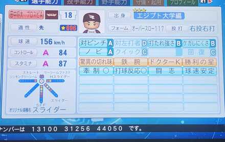 猪狩守 149キロ コンaスタb 変化球3種 ス4フ4カ4 普通にエースやな