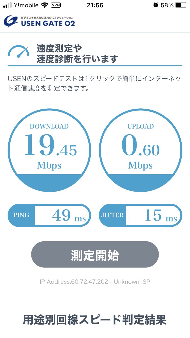 タクヤ a בטוויטר adsl環境の通信速度を計測 1 7mbpsとの事 softbank airで通信速度 が改善され動画やkindle書籍が快適にダウンロードできると嬉しいが どうだろう 速くなるか楽しみにしたい 使用中のインターネットの速度は 1 7mbps お使いのインターネット