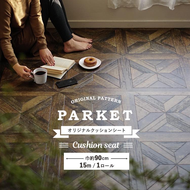 クッションフロア パーケットフロア柄 クッションシート 15m巻 1ロール単位 巾91cm アンティーク インダストリアル ナチュラルオーク ダークオーク 壁紙屋本舗 paypayモール店 通販 paypayモール