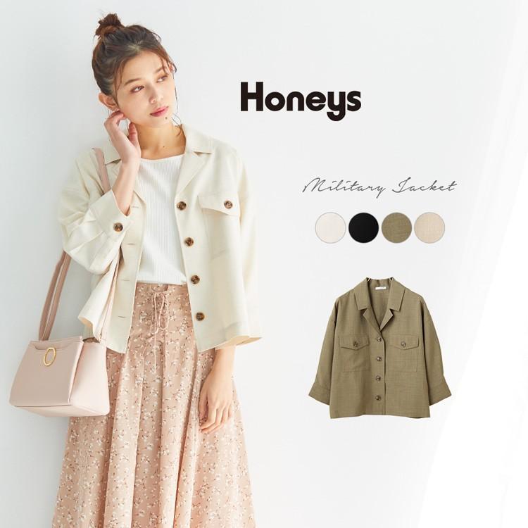 ジャケット レディース カジュアル ゆったり ショート丈 ミリタリー 7分袖 春 春新作 honeys ハニーズ ミリタリージャケット