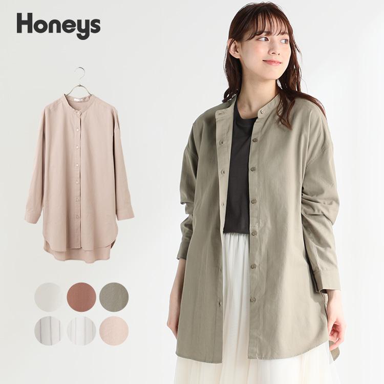 シャツ レディース ロングシャツ おしゃれ 長袖 綿100 ストライプ 無地 春 夏 秋 冬 新作 honeys ハニーズ バンドカラーシャツ ハニーズ オンラインショップ 通販 paypayモール