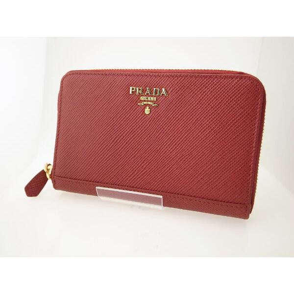質イコー プラダ prada 正規品 レザー ラウンドファスナー長財布 グレー 1ml506 中古