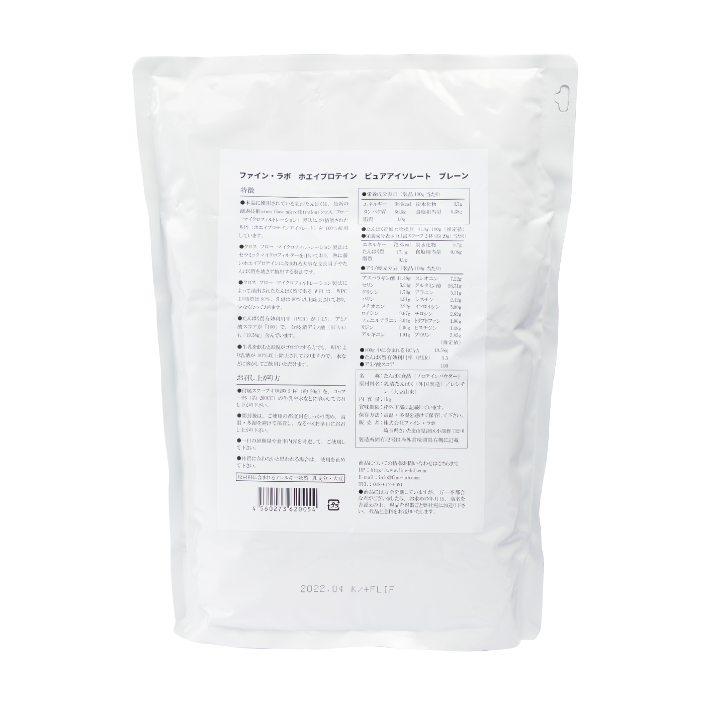 ファイン ラボ ホエイプロテインピュアアイソレート プレーン風味 1kg
