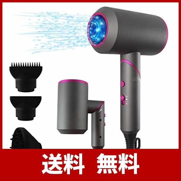 super dreamヘアドライヤー 大風量 速乾 高濃度マイナスイオン ドライヤー 1500w 3段階風速 冷熱風 3種類ノズル交換可 髪質改善 小型 折り畳み式 静音 強風 オシャレ 人気 家庭 旅行 ピンク