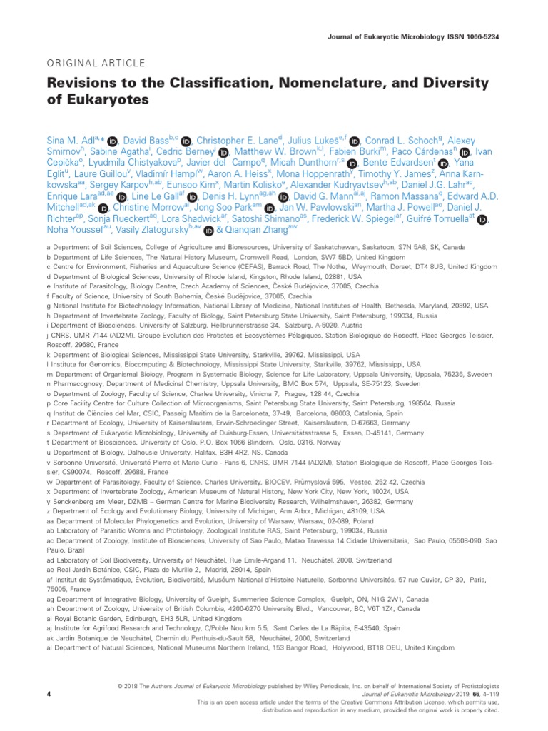 adl et al 2019 journal of eukaryotic microbiology taxonomy biology eukaryotes