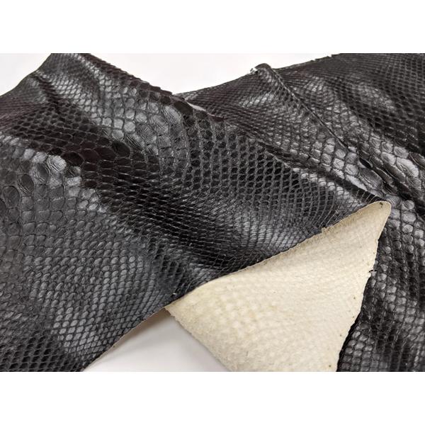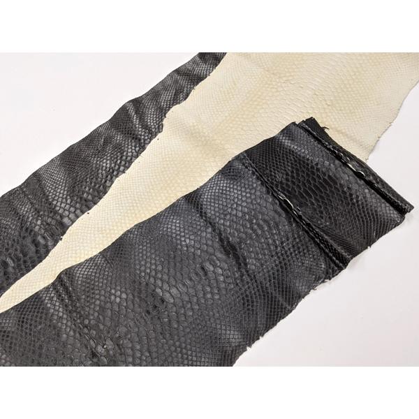パイソン バックカット ブラック 下地は白 約230cm 価格固定 0 5mm前後 送料無料 ぱれっと レザークラフト半裁 1枚革 その