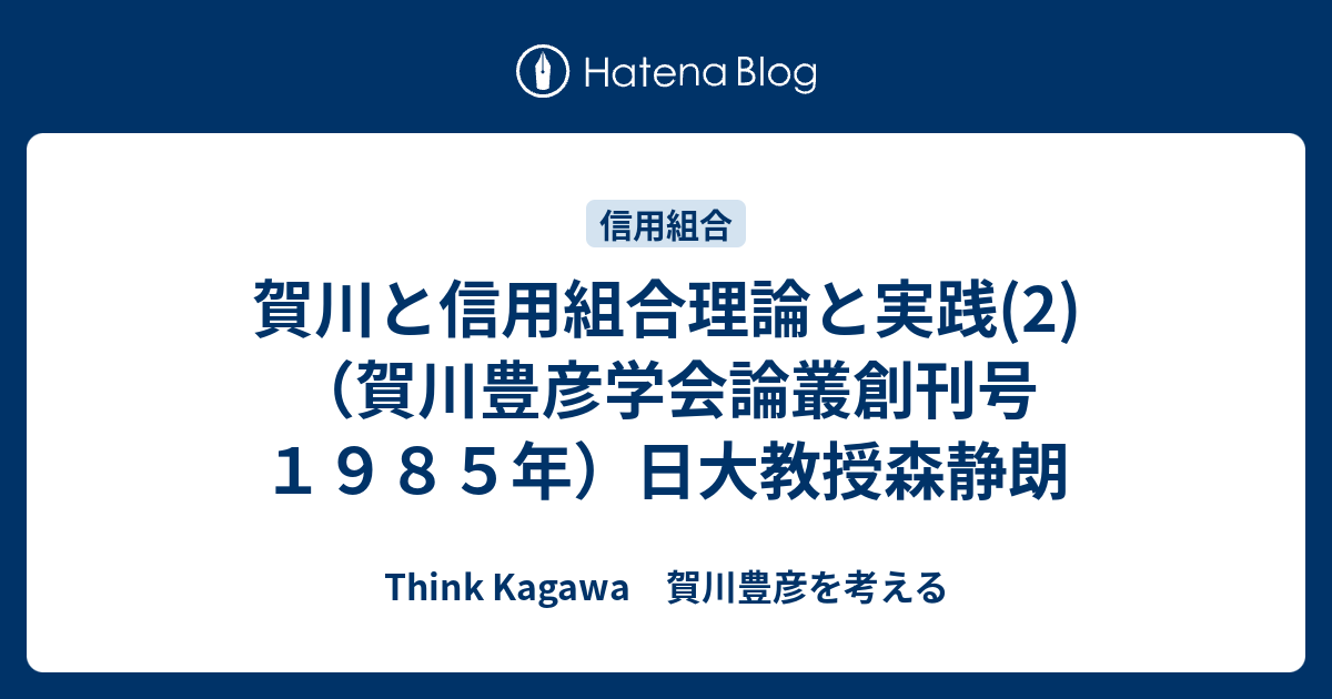 think kagawa 賀川豊彦を考える
