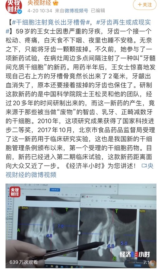 中國幹細胞新藥防治 老掉牙 臨床顯奇效 牙齒再生不再是夢 健康加油站
