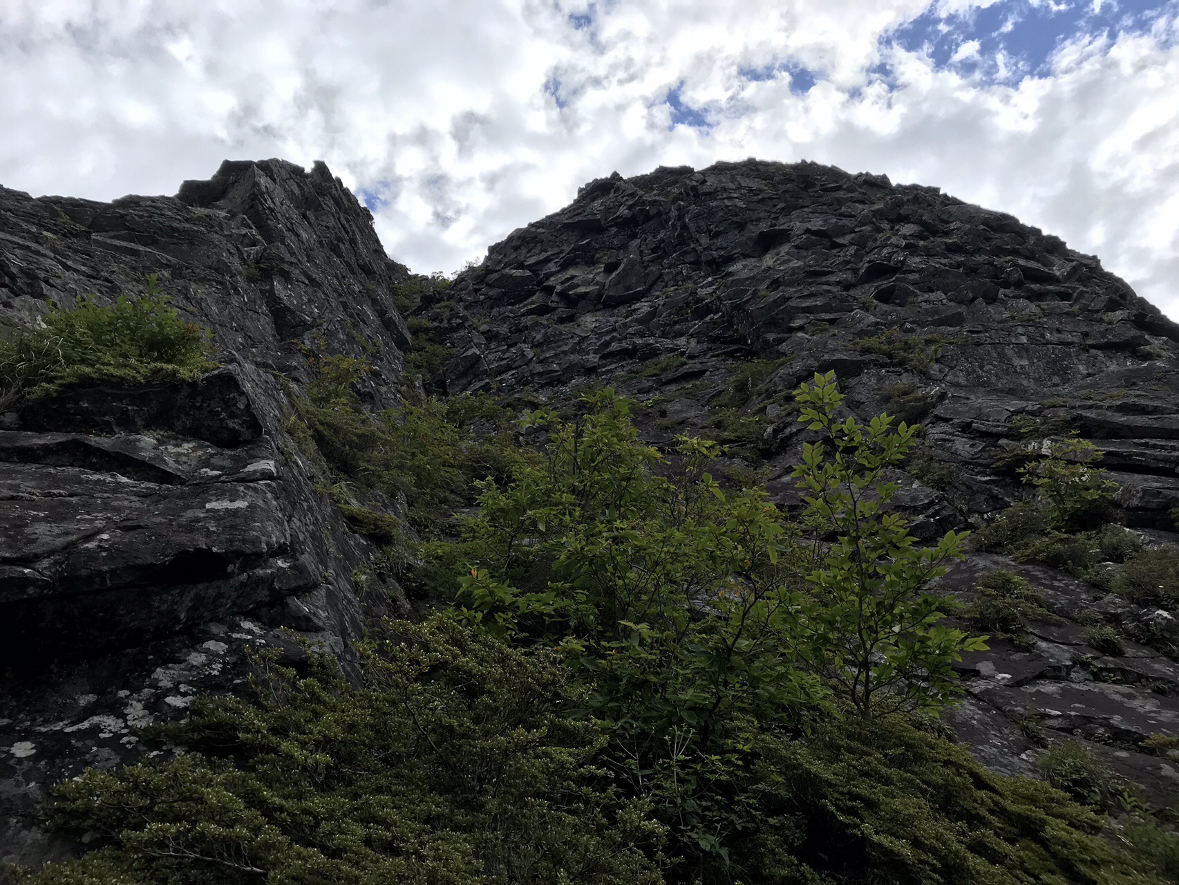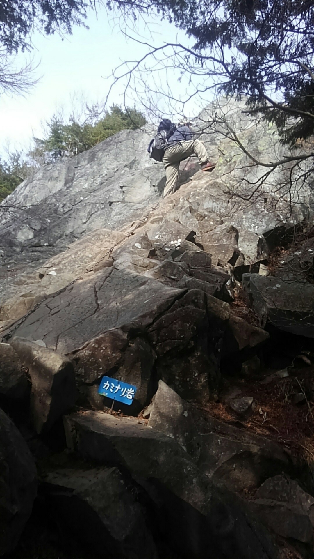 乾徳山 山頂手前の岩場を登り詰め 直下にある20メートルの岩の壁に挑戦 たびころの山と鉄旅