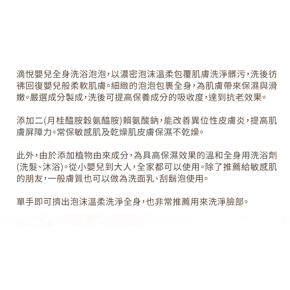 滴悅 嬰兒全身洗浴泡泡300ml 敏感肌適用 敏感肌 乾燥肌 低刺激 保濕 洗面乳 刮鬍泡