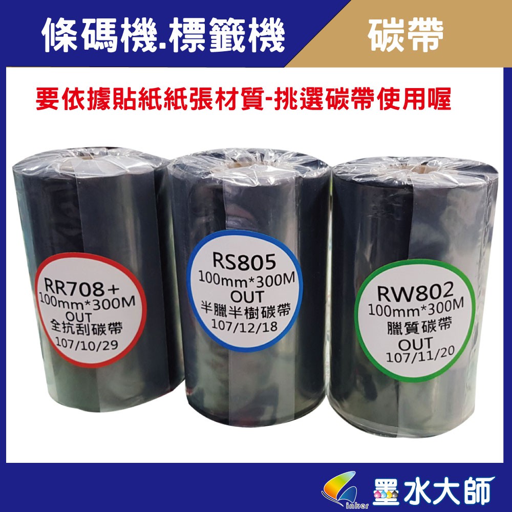 墨水大師 條碼機碳帶 100mm 300m 碳帶 10cm 300m 半抗碳帶 全抗刮碳帶 半蠟半質碳帶標籤機