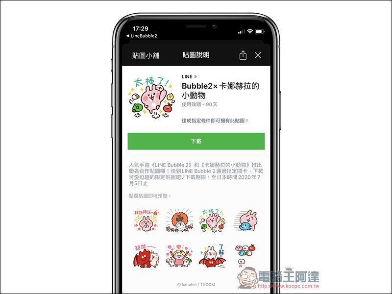 line bubble 2 卡娜赫拉的小動物 合作釋出line 免費貼圖 同場加映 line 免費活動貼圖整理 電腦王阿達