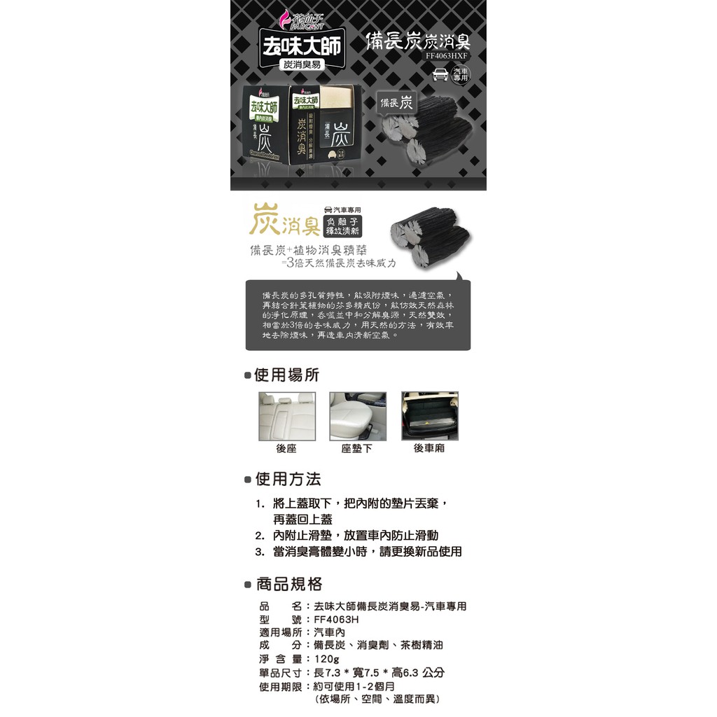花仙子 去味大師 車內炭消臭 備長炭 炭消臭劑 汽車芳香除臭劑