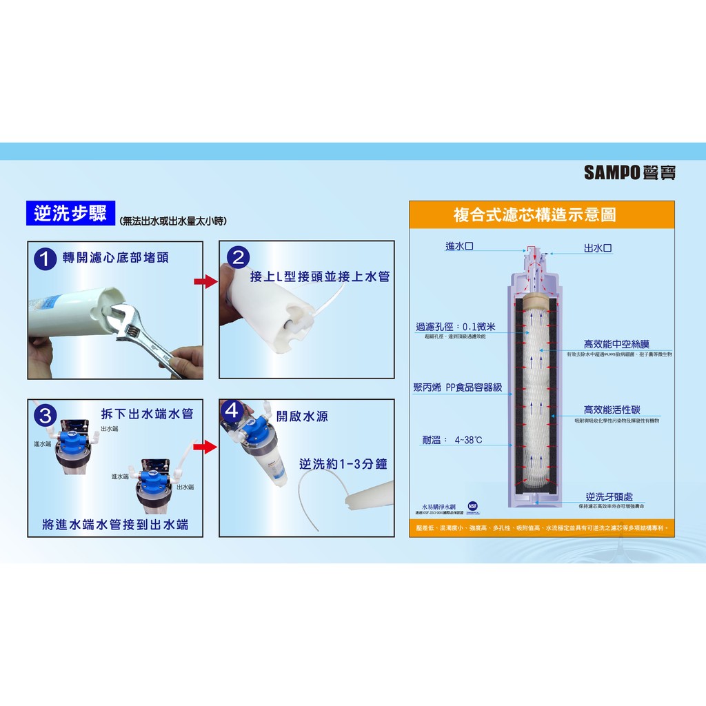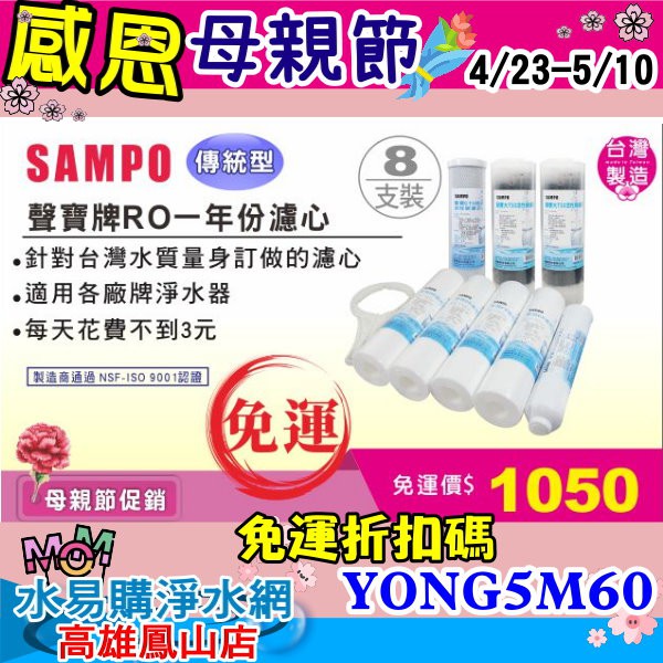 水易購淨水網 板橋店 聲寶牌 sampo ro一年份濾心 聲寶ro膜 50g 贈針孔式廢水比 10支裝
