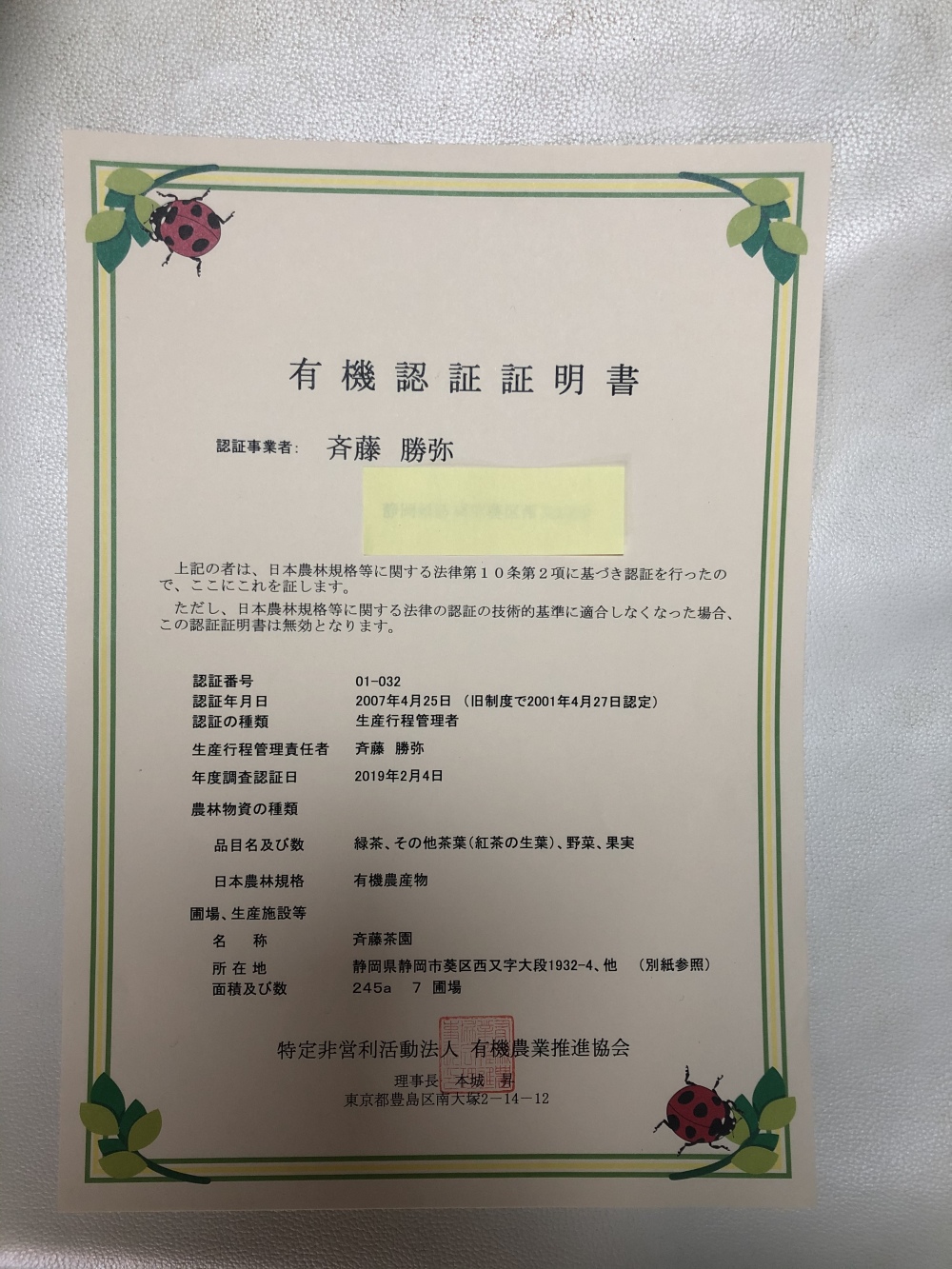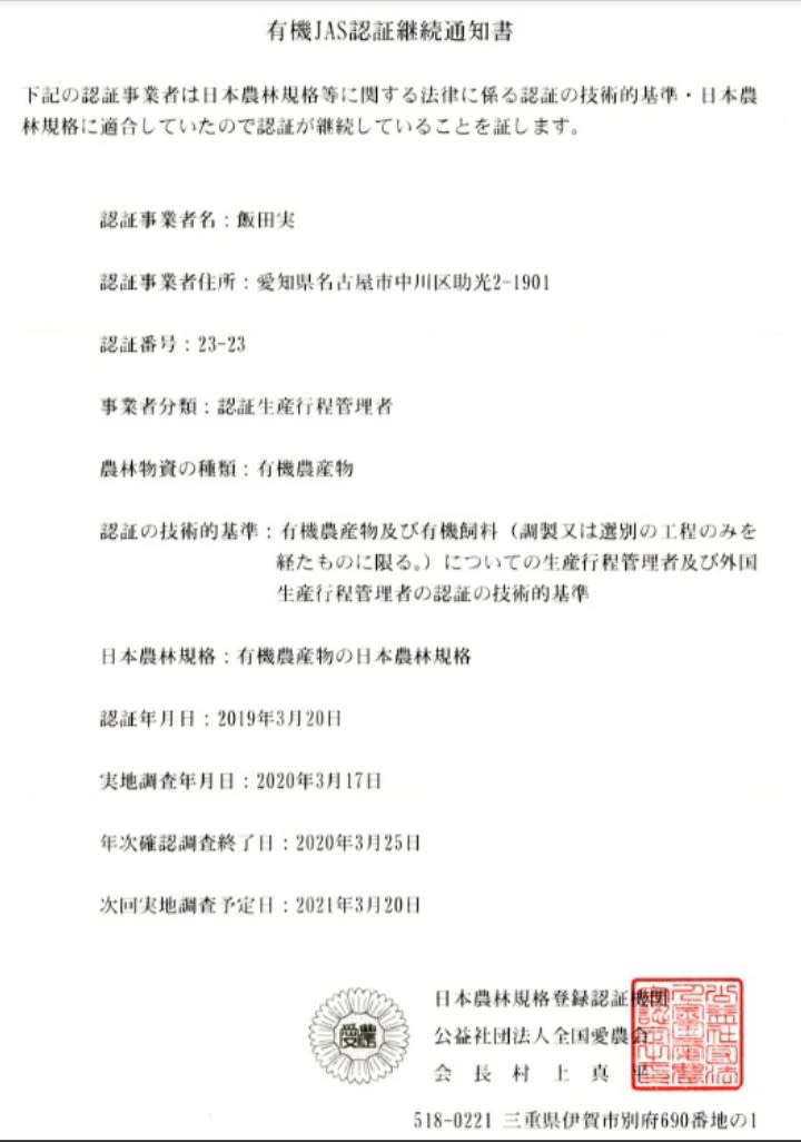 有機jas認定 スッキリ爽快 スルガエレガントです