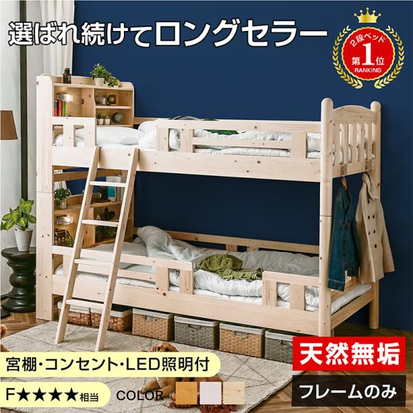 ランキング1位 獲得二段ベッド 2段ベッド 耐荷重500kg 耐震 分離 宮付き コンセント led照明付 すのこ ファイン 本体のみ art