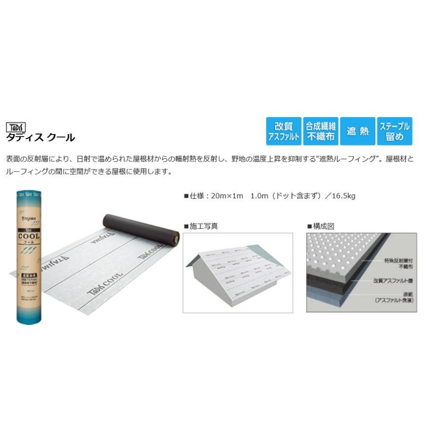 送料無料 タディス クール1m巾x20m 厚さ1 0mm 16 5kg 田島ルーフィング 改質アスファルト 遮熱 屋根下葺材 tjmtc 建材ステーション yahoo 店 通販 yahoo ショッピング