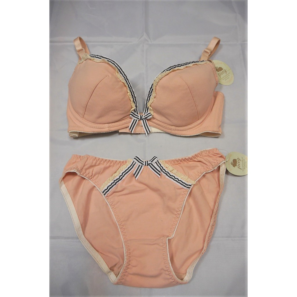 粉紅拉拉 pz608 成套棉質內衣褲組 ab罩杯 32 38 舒適薄墊 素雅蕾絲滾花包覆 深v無鋼圈內衣 棉質內褲