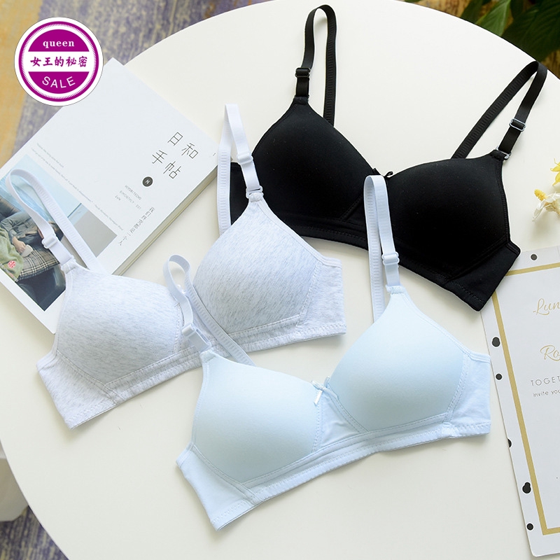 日韓薄款純棉內衣 大學生高中少女棉質學生內衣舒適無鋼圈發育期文胸舒適 集中聚攏深v純色內衣 學生內衣 小背心小可愛國中生