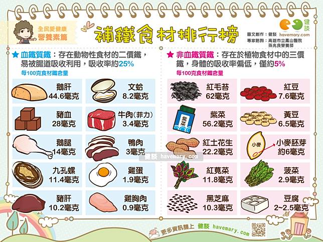 鐵食物吸收補鐵飲食 動物性鐵質較植物性易被身體吸收 20種補鐵食材排行 czsrl