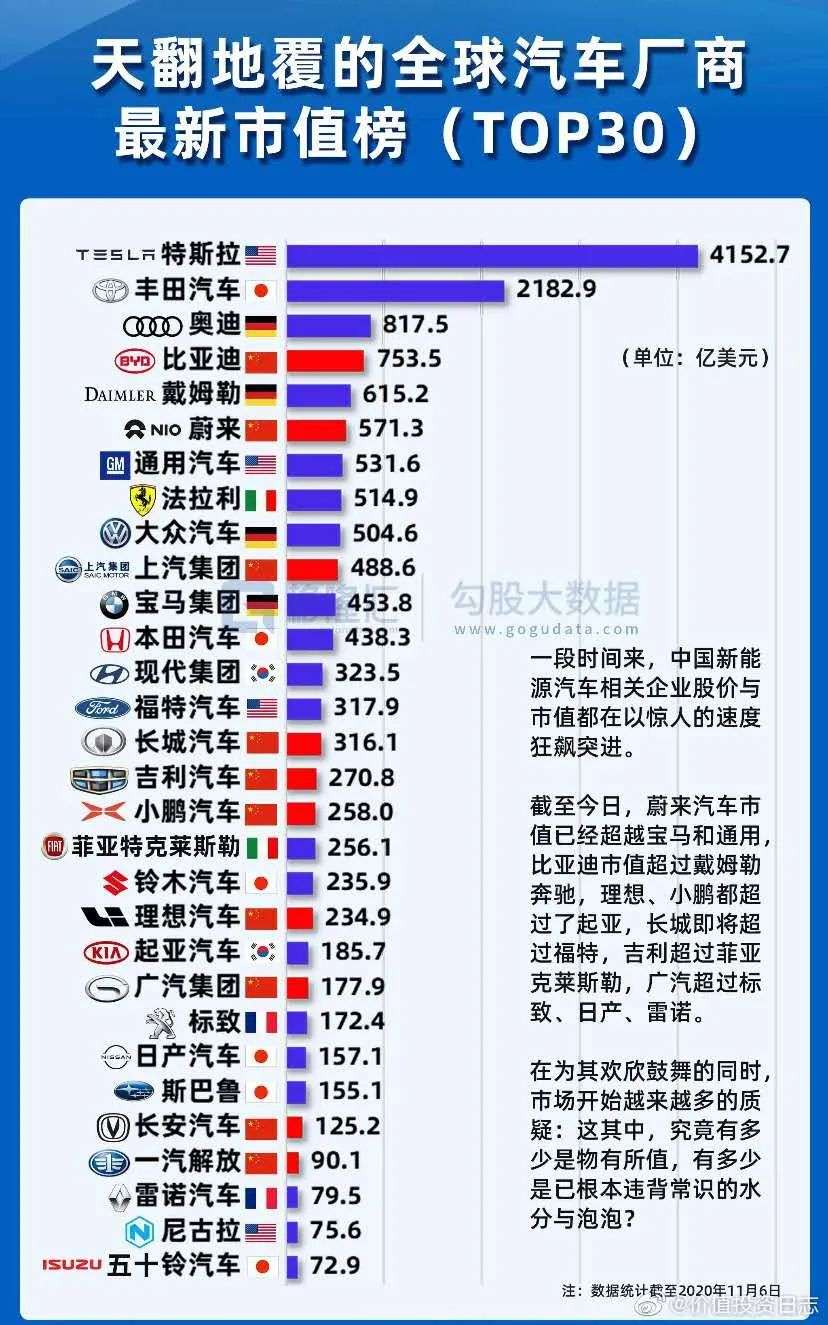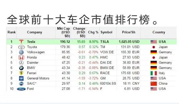 最新全球車企市值排名看完豐田德系粉哭了 每日頭條
