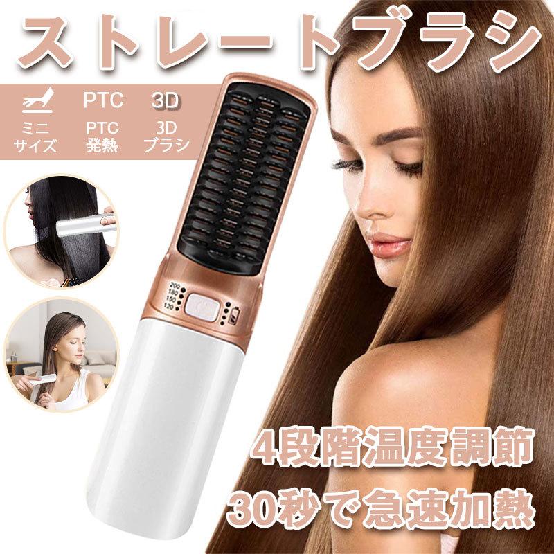 あす楽配達 ストレート アイロン ヘアアイロン 母の日 ブラシ マイナスイオン ヒートブラシ ミニ ショートヘア ロングヘア ポータブルミニブラシ コームアイロン ストレートブラシ 4段階温度調節 30s急速加熱 海外対応 哲也卸屋
