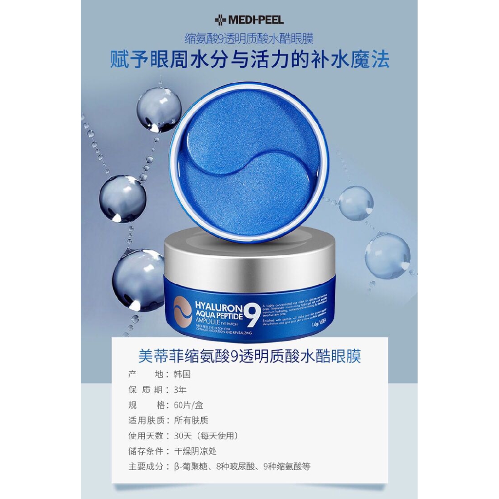 现货 韓國 medi peel 美蒂菲 眼膜 保濕眼膜 眼霜 透明質酸眼膜 眼部護理 眼膜貼 60片 盒