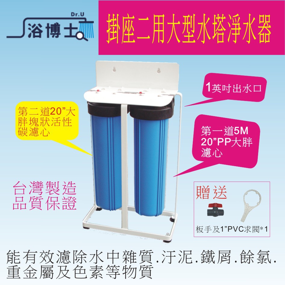 水塔過濾專用 石灰質抗垢淨水器 1英吋 5萬加侖濾心 有效抑制水塔清苔 水垢 水易購忠義店
