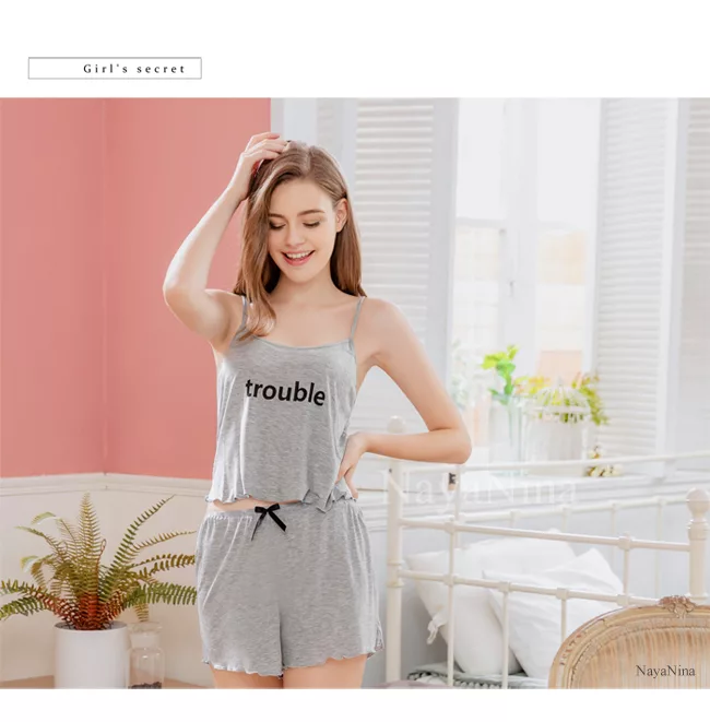 博客來 naya nina 居家睡衣簡約素灰棉質細肩短褲套裝睡衣free 灰