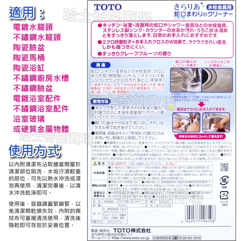 日本製造 toto 水龍頭清潔液 水垢清潔劑 水龍頭清潔劑 衛浴清潔液 水龍頭清潔液 水漬 石灰質 水垢用 水龍頭清潔