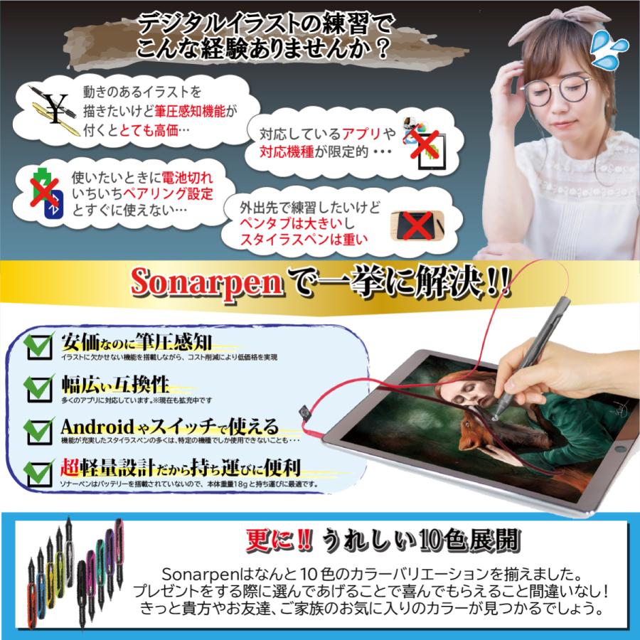 タッチペン スタイラスペン 筆圧対応 電源不要 高感度 ディスク型ペン先 android ios 対応 sonarpen ソナーペン sonarpen k digital 通販 yahoo ショッピング