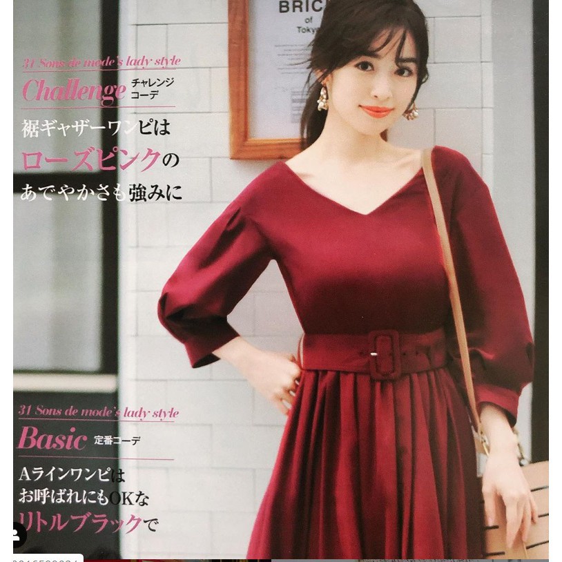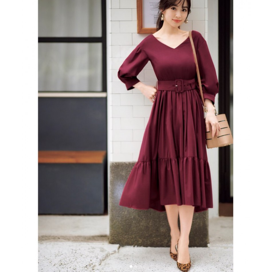 泉里香著用 雜誌款 31 sons de mode v領腰帶蛋糕裙擺洋裝 日幣14 000