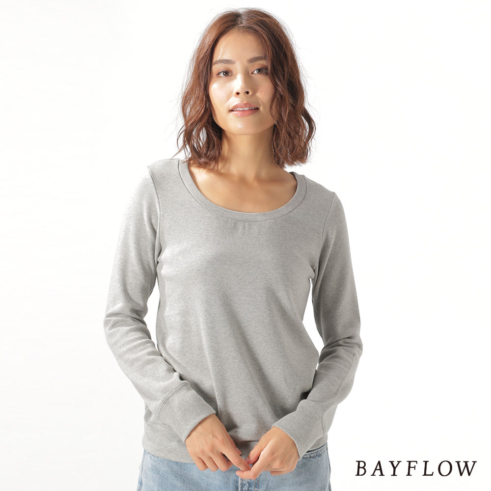 全新bayflow女素色英文印字圓領拼布棉質長袖t恤上衣 米灰m