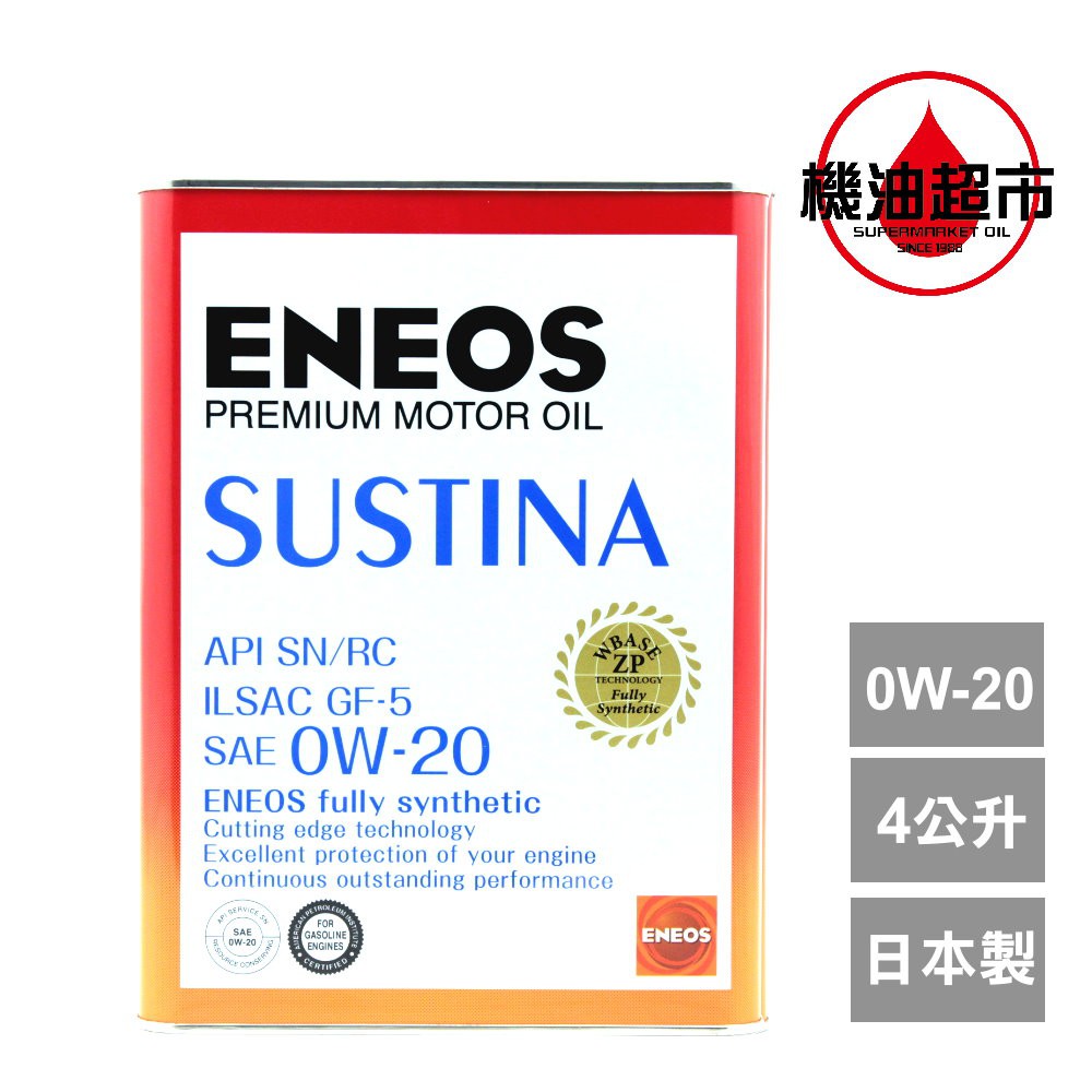 高階日本製 eneos 0w20 0w 20 sustina 4公升 鐵罐 汽車機油 新日本石油 日蝕 機油超市