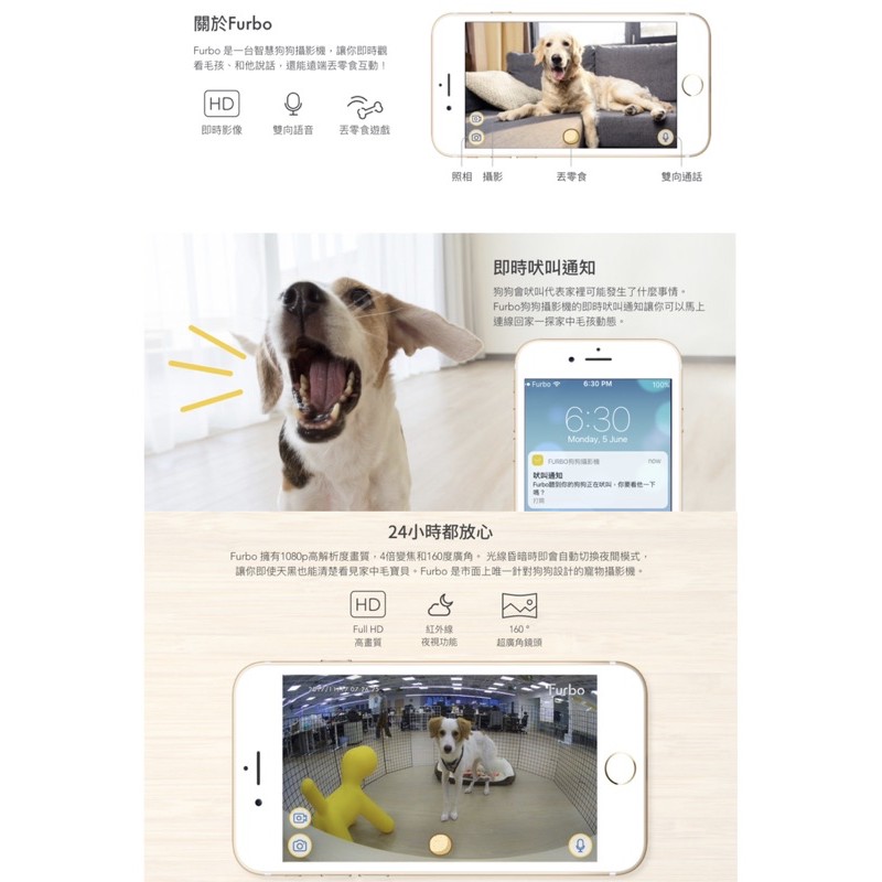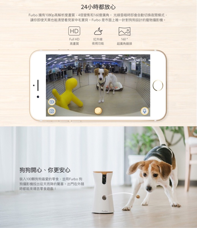furbo 丟零食狗狗攝影機 furbo智慧寵物攝影機 hd畫質 紅外線夜視 讓你能隨時觀看無死角 還能和毛孩說話 遠端丟零食互動