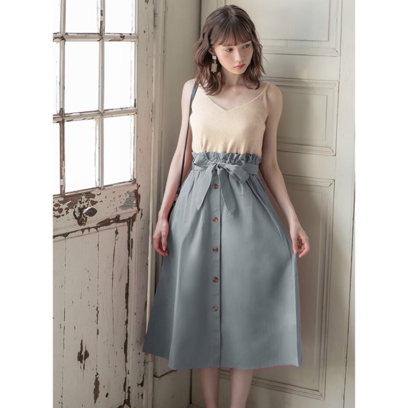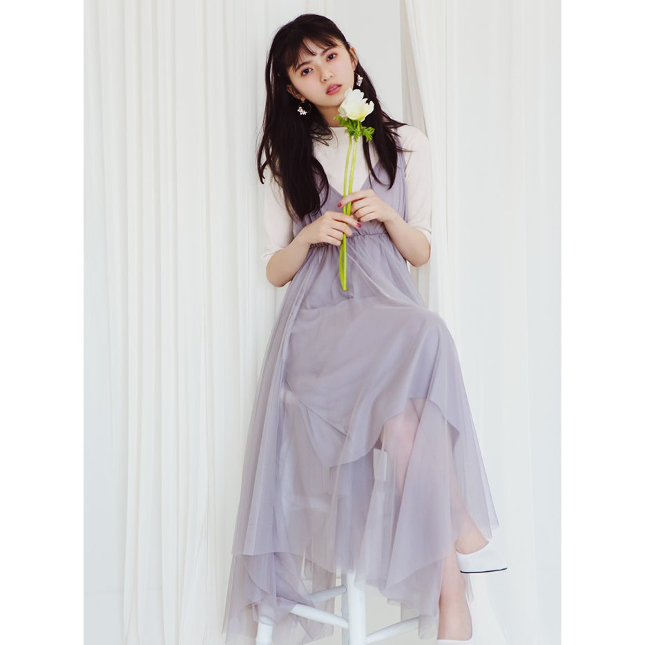 全新 日貨 grl立領舒適針織長板洋裝 細肩鬆緊層次氣質紗質洋裝