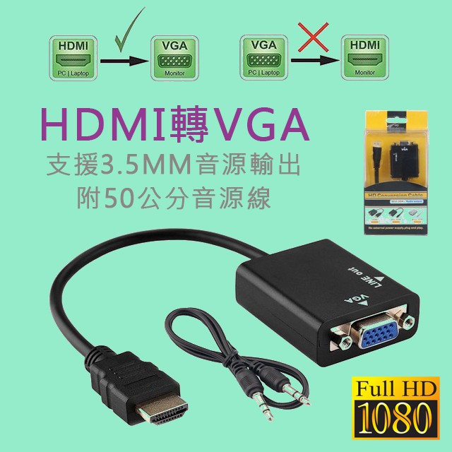 hdmi to vga轉接線 hdmi轉vga 電腦轉電視 無音源版
