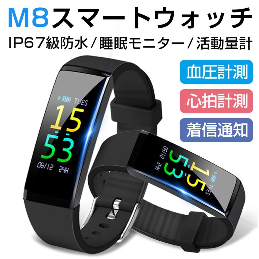 amazon itdeal スマートウォッチ 活動量計 心拍計 歩数計 スマートブレスレット 多機能スポーツウォッチ 大字幕 カラースクリーン ip67防水 運動記録 消費カロリー 睡眠検測 長座注意 アラーム 着信電話 sms twitter whatsapp line通知 iphone android対応 新版m8