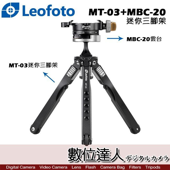 數位達人 leofoto 徠圖 mt 03 mbc 20 迷你三腳架 桌上型 蜘蛛 微距 旅遊 手機直播 雲台