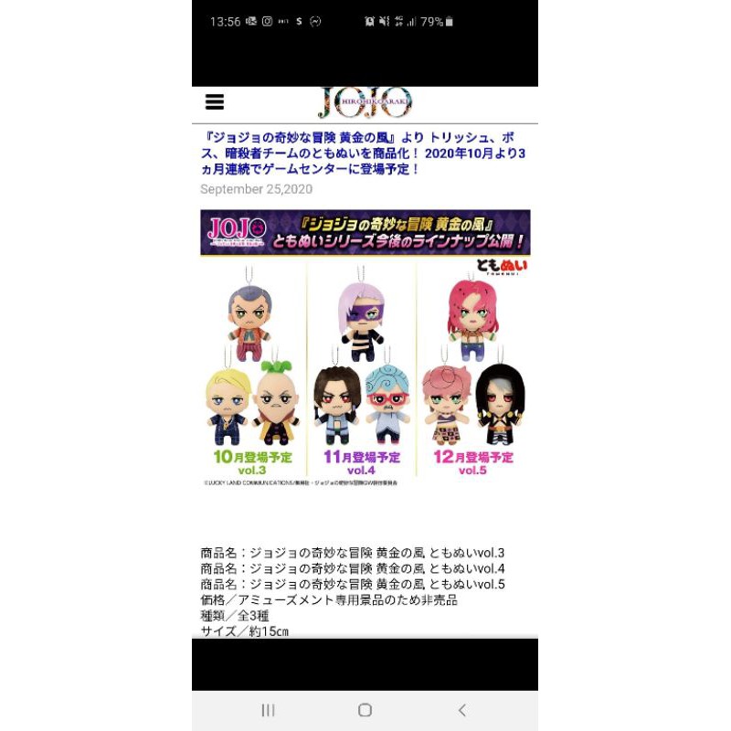 jojo的奇妙冒險 第五部黃金之風 醜娃 暗殺小隊 預購