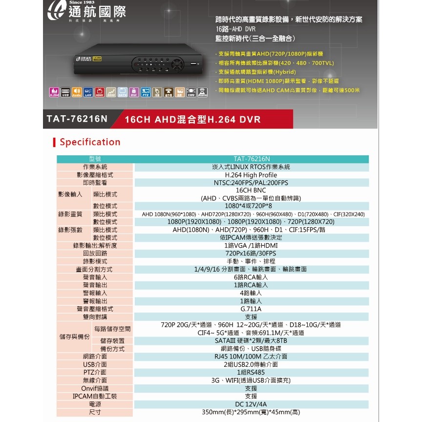 高畫質錄影設備 tat 76216n 東區電訊股份有限公司