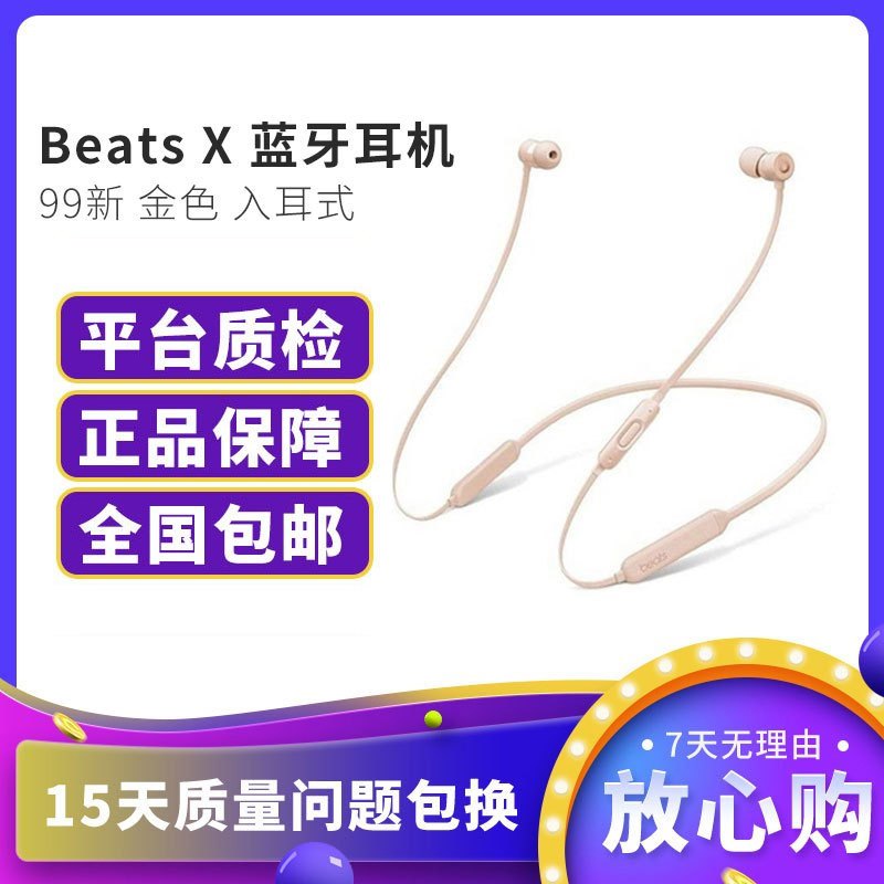 apple二手耳机 耳麦beats x 二手99新 beats x 蓝牙无线入耳式耳塞颈挂脖式魔音游戏耳机带麦线控可通话 配件齐全 金色 配件齐全 价格图片品牌报价 苏宁易购乐亨优品二手手机专营店