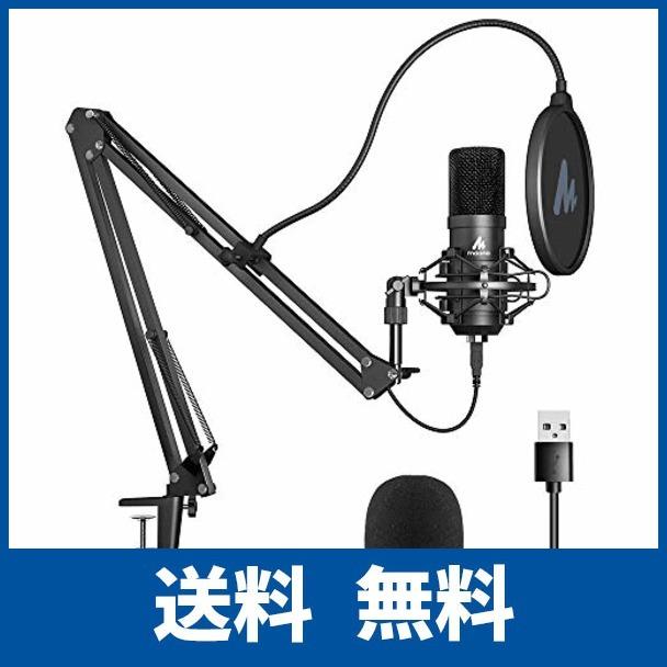 risea usbマイク コンデンサーマイク 単一指向性 マイクスタンド 高音質 アームスタンド付き 録音 生放送 youtube ゲーム実況 windows mac ps4対応 マイクセット 黒い