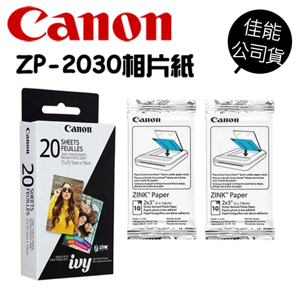 canon 迷你相印機專用相紙 zp 2030 zink 相片紙 2 3吋 20入 pv 123 zv 123a